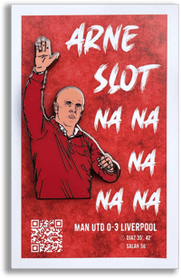 Celebrate a defining moment in Liverpool’s new era with our exclusive Arne Slot Badge. This collectible captures Slot’s special connection with the travelling Kop after the Reds’ dominant 3-0 win at Old Trafford.